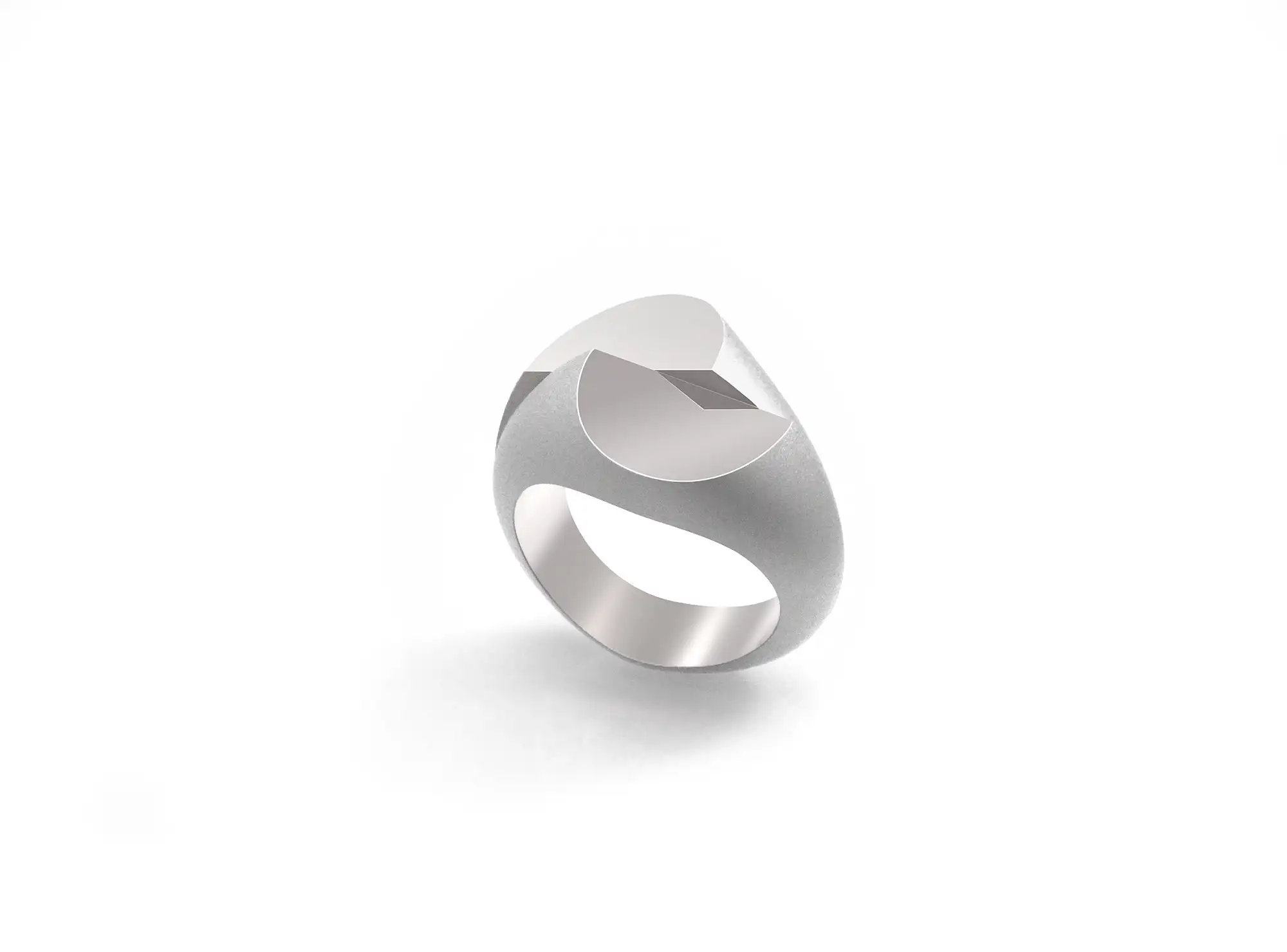 Progressiver Siegelring. Massiv gearbeitet in 925 Sterlingsilber – erhältlich auch in einer Goldlegierung. Maß der Ringplatte: ca. 18 mm x 18 mm; Preis und Anfertigung auf Anfrage